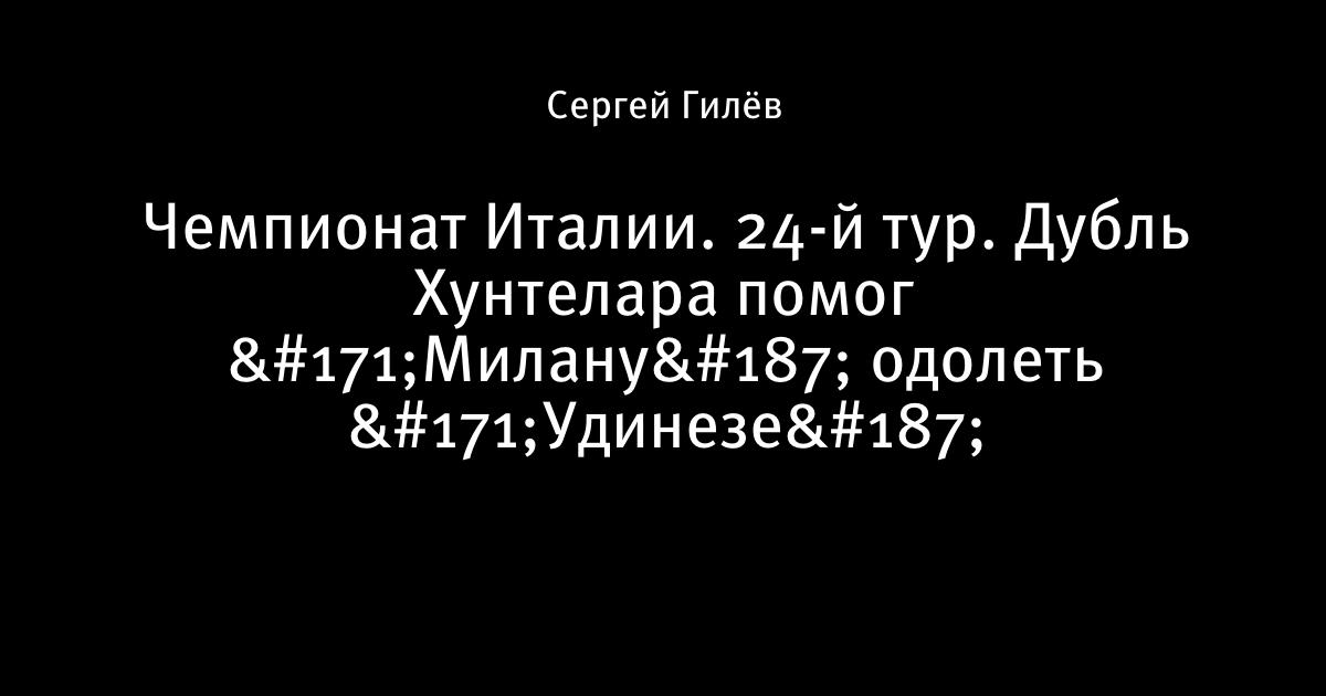 13 февраля 2010, 01:04 Чемпионат Италии. 24-й тур. Дубль Хунтелара помог «Милану» одолеть «Удинезе» Милан Удинезе 3:2 1:0 Хунтелар (7) 2:0 Пато (39) 2:1 Флоро Флорес (45) 3:1 Хунтелар (57) 3:2 Ди Натале (87) Автор Сергей Гилёв Этот пост опубликован в блоге на Трибуне Sports.ru. Присоединяйтесь к крупнейшему сообществу спортивных болельщиков! Другие посты блога Разборки в олимпийском Париже