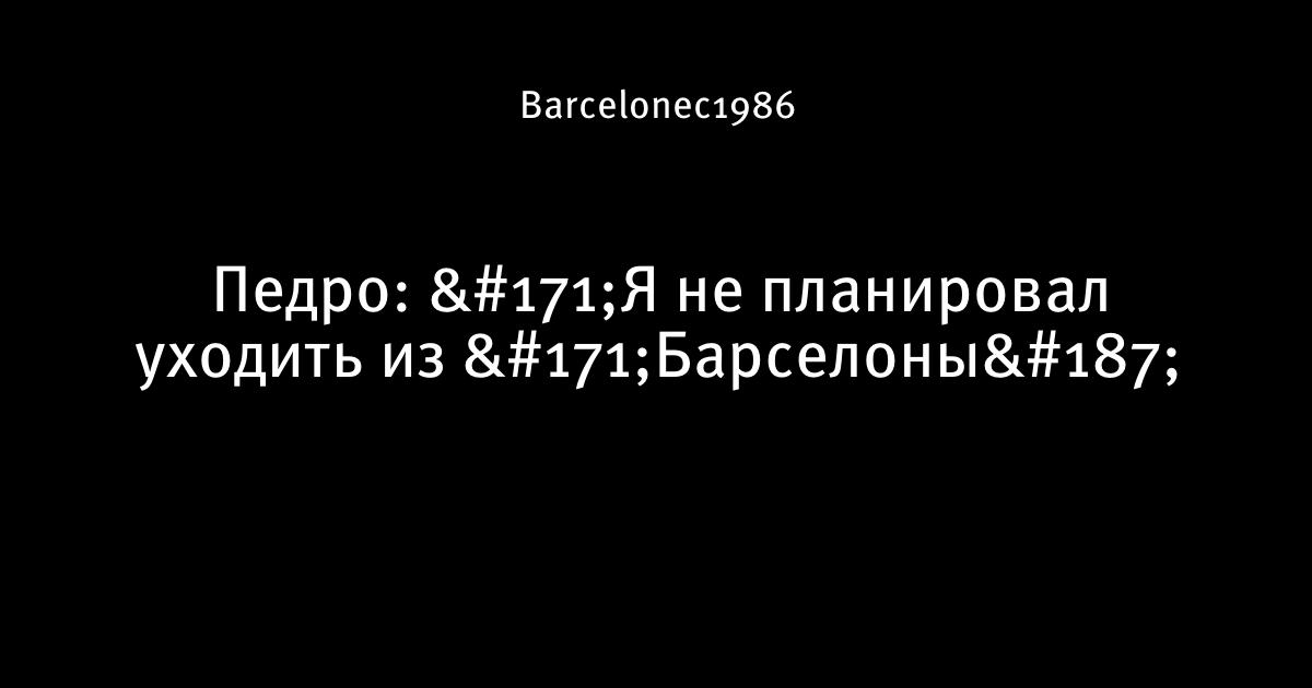 "Барселона" давно стала моей второй семьёй. Я постоянно нахожусь в режиме готовности к конкуренции и уже не представляю себе другого состояния. Тут нельзя расслабляться. Концепция моей роли в команде почти каждый сезон немного меняется, к чему тоже следует быть готовым. Я не планировал уходить из "Барсы" этим летом, хочу выиграть с клубом ещё несколько трофеев", - заявил Педро в интервью Sport.es.