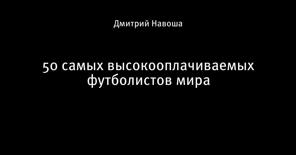 Свеженький с пылу с жару рэнкинг от Futebolfinance.com, понемногу выдвигающегося на роли эдакого футбольного Forbes. Отдельные цифры могут вызвать споры, многие, очевидно, округлены, но в целом кажется, что картина на рынке труда главных планетарных футбольных звезд отражена вполне правдоподобно. Дана годовая зарплата футболистов, все суммы приведены до вычета налогов, но не включают в себя рекламные доходы футболистов.