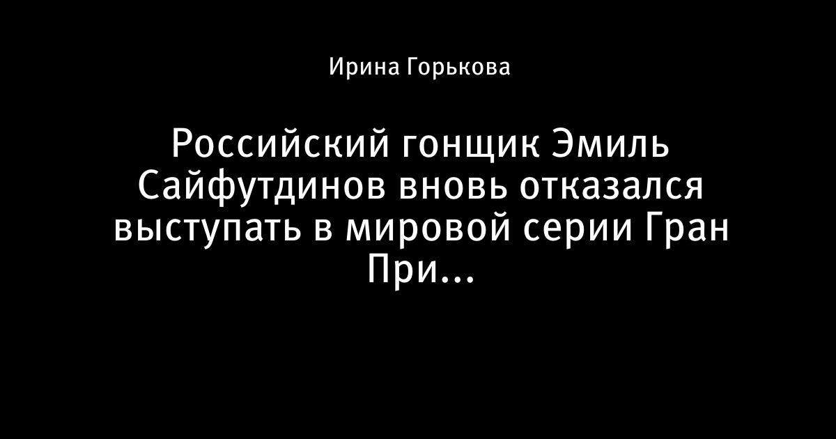 Российский гонщик Эмиль Сайфутдинов вновь отказался выступать в мировой серии Гран При...