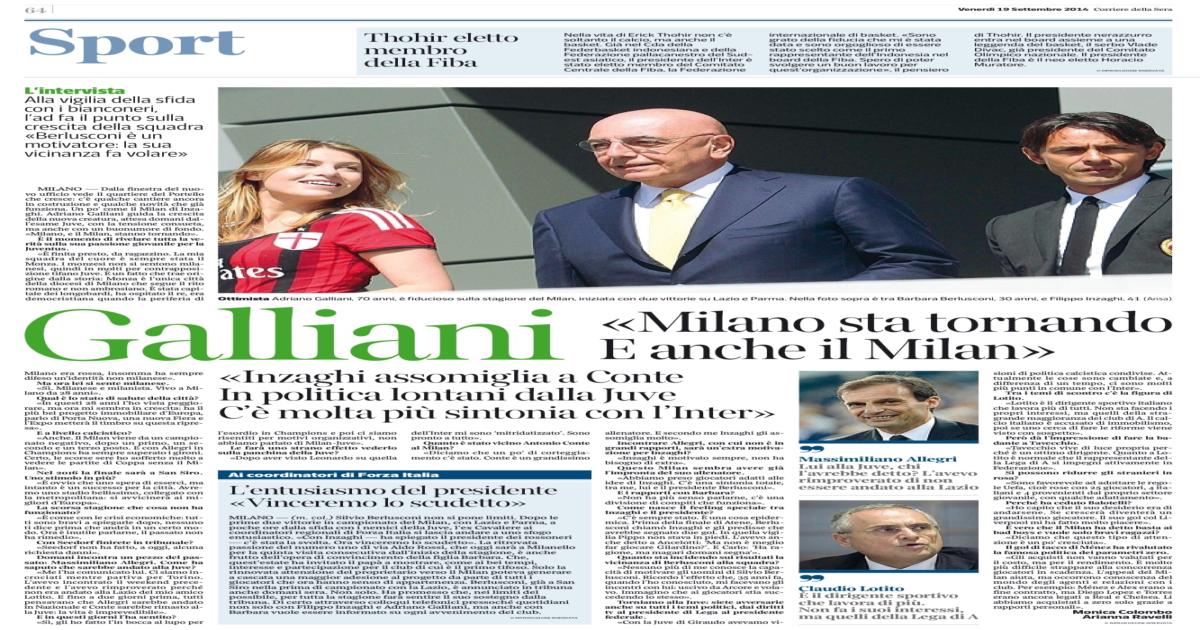 Стоило пожурить итальянскую прессу за отсутствие интересных материалов, как ее буквально прорвало, только и успевай обрабатывать. Очевидно, всепоражающий энтузиазм Индзаги добрался и досюда. Спортивная пресса сама справляется неплохо, а тут еще и наиболее престижное итальянское издание в абсолюте - Corriere della Sera - опубликовало интересное интервью с Адриано Галлиани. Что поведает нам Лысый? Посмотрим. У него явно хорошее настроение.