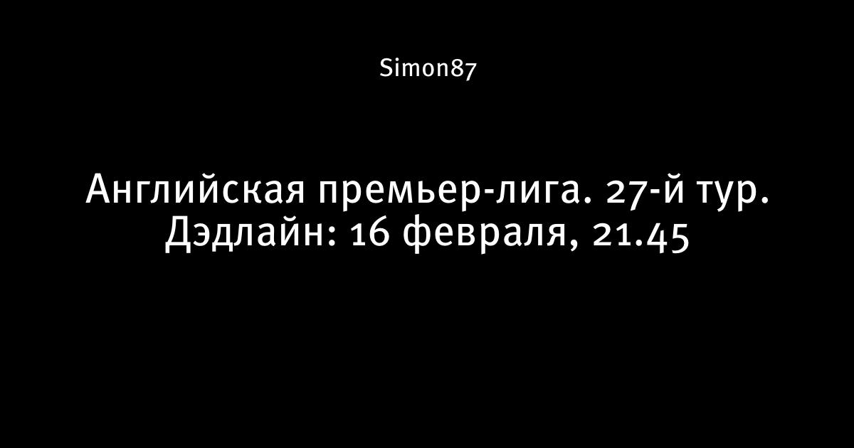 Английская премьер-лига. 27-й тур. Дэдлайн: 16 февраля, 21.45
