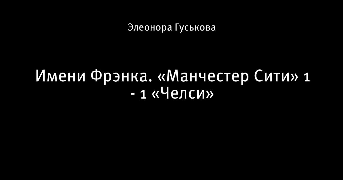 Имени Фрэнка. «Манчестер Сити» 1 - 1 «Челси»