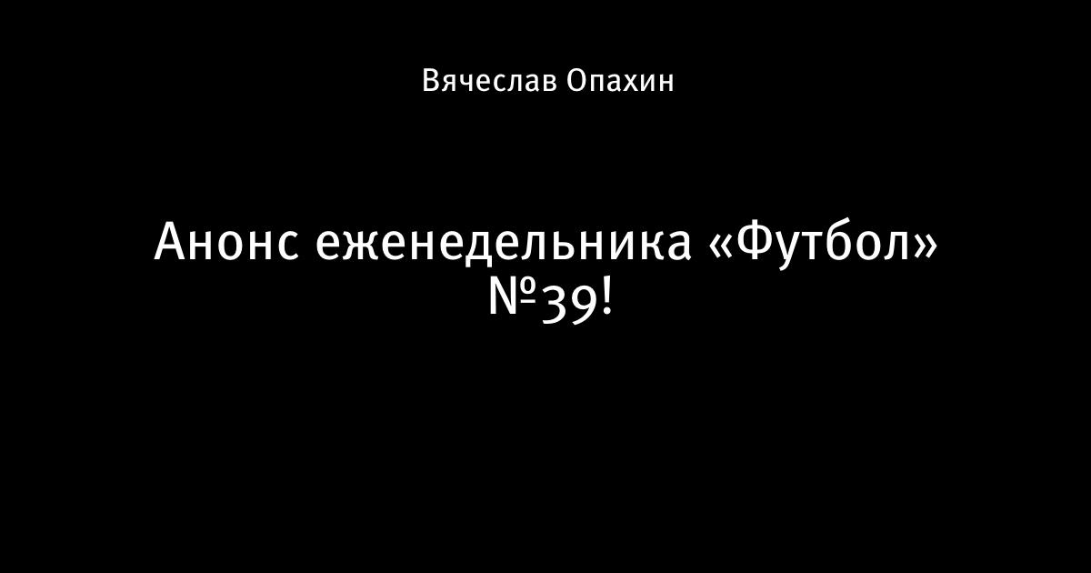 Анонс нового номера! Еженедельник «Футбол» №39 (2829). В продаже с 25 сентября по 2 октября.