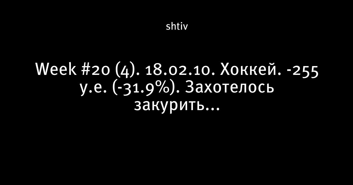 Week #20 (4). 18.02.10. Хоккей. -255 у.е. (-31.9%). Захотелось закурить...