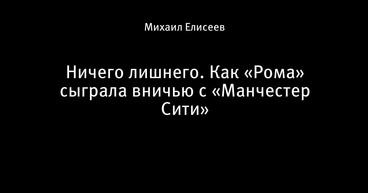 Ничего лишнего. Как «Рома» сыграла вничью с «Манчестер Сити»