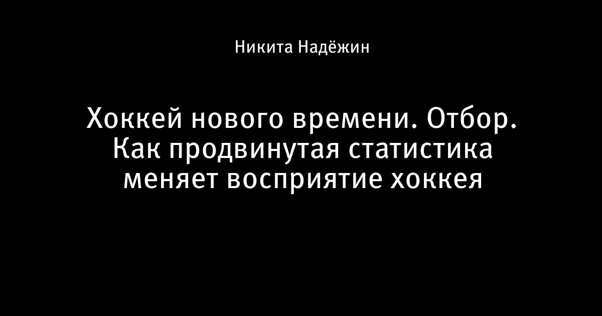Хоккей нового времени. Отбор. Как продвинутая статистика меняет восприятие хоккея