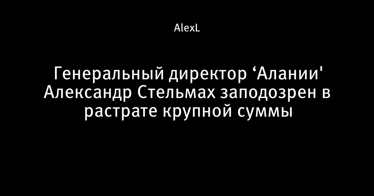 По сообщениям Генпрокуратуры РФ Генеральный директор ‘Алании' Александр Стельмах заподозрен в растрате крупной суммы.
