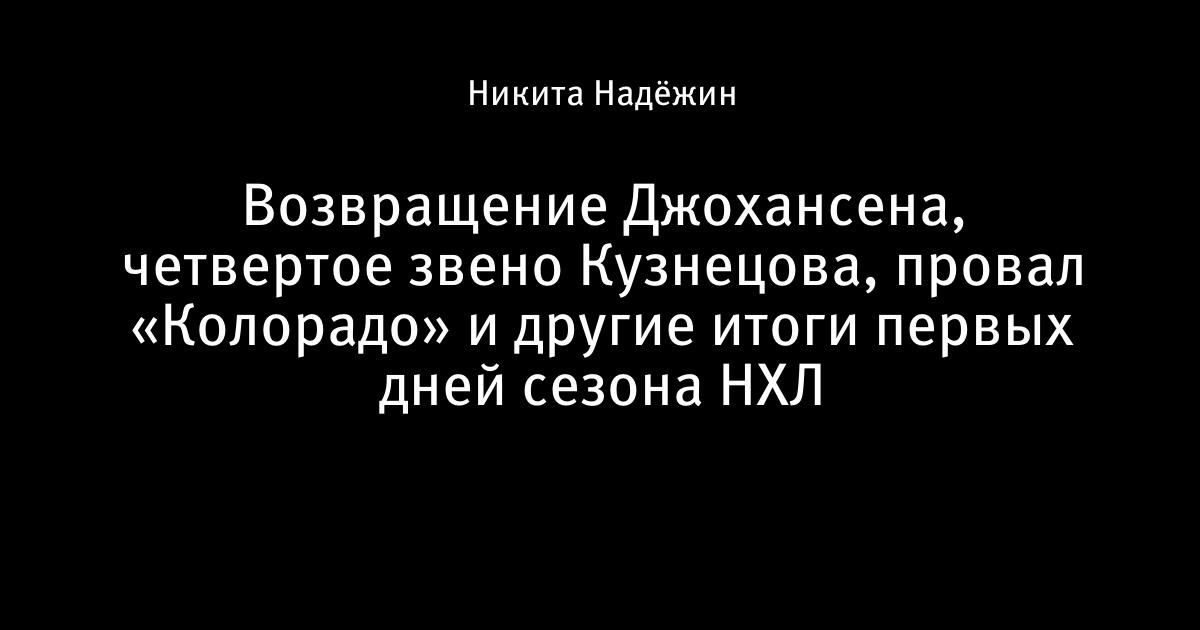 Возвращение Джохансена, четвертое звено Кузнецова, провал «Колорадо» и другие итоги первых дней сезона НХЛ