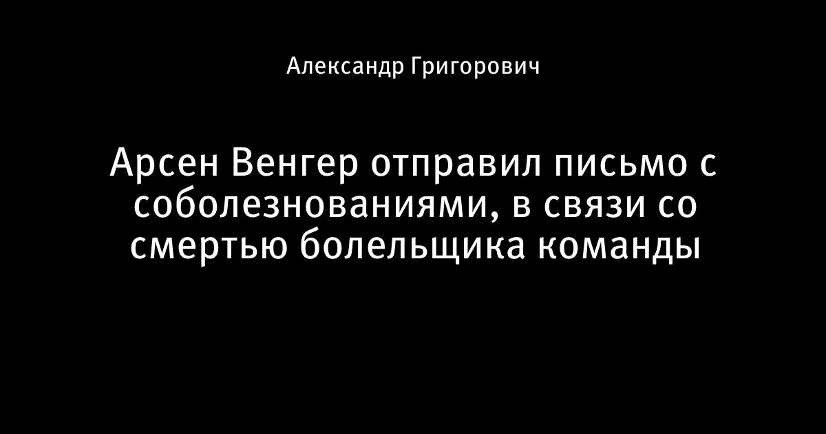 Арсен Венгер отправил письмо с соболезнованиями, в связи со смертью болельщика команды
