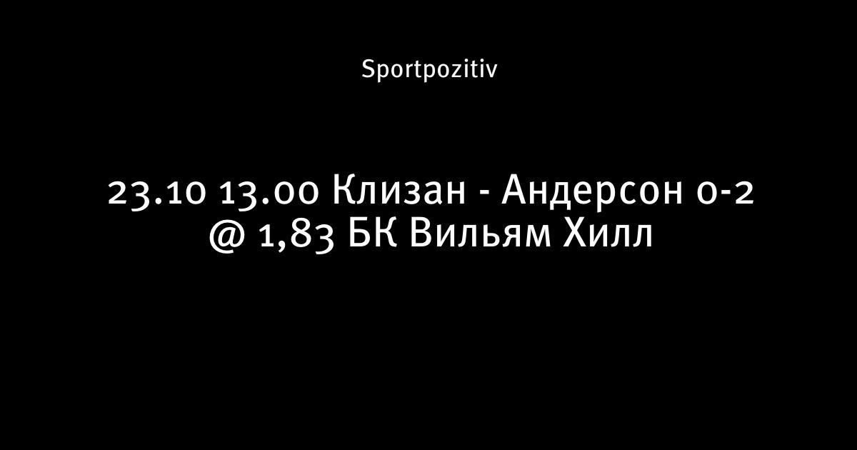23.10 13.00 Клизан - Андерсон 0-2 @ 1,83 БК Вильям Хилл