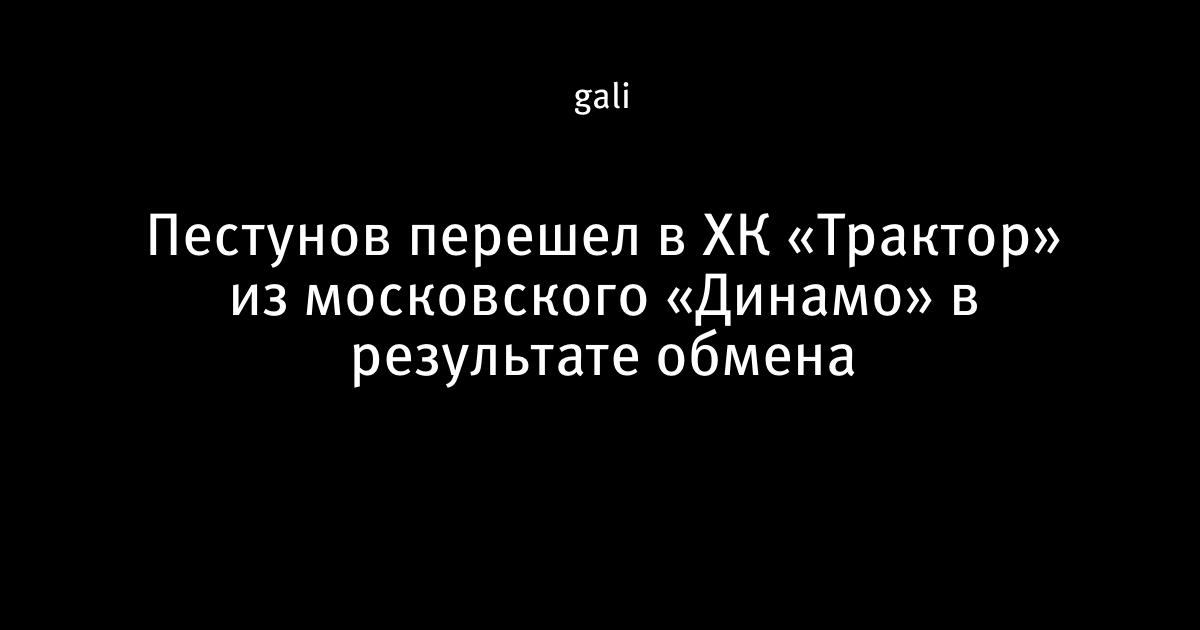 МОСКВА, 25 окт - Р-Спорт.Форвард Дмитрий Пестуновсменил московское "Динамо" на"Трактор" в результате обмена, сообщил агентству "Р-Спорт" первый вице-президент челябинского хоккейного клубаСергей Гомоляко.