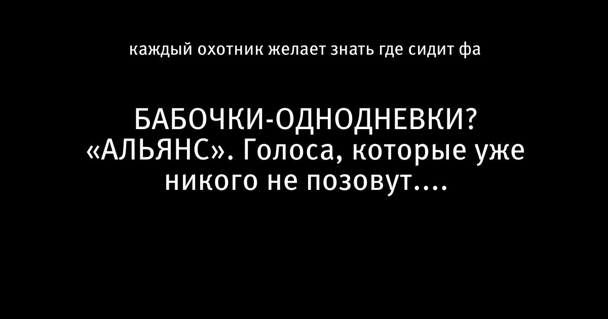 БАБОЧКИ-ОДНОДНЕВКИ? «АЛЬЯНС». Голоса, которые уже никого не позовут....