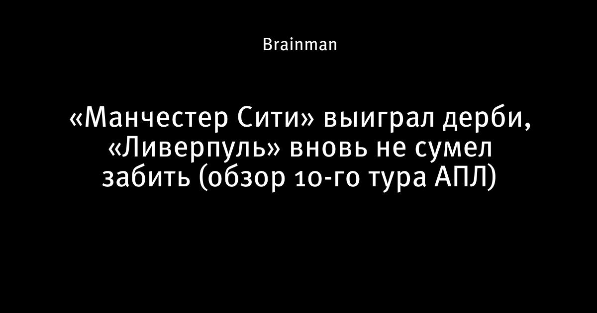 «Манчестер Сити» выиграл дерби, «Ливерпуль» вновь не сумел забить (обзор 10-го тура АПЛ)