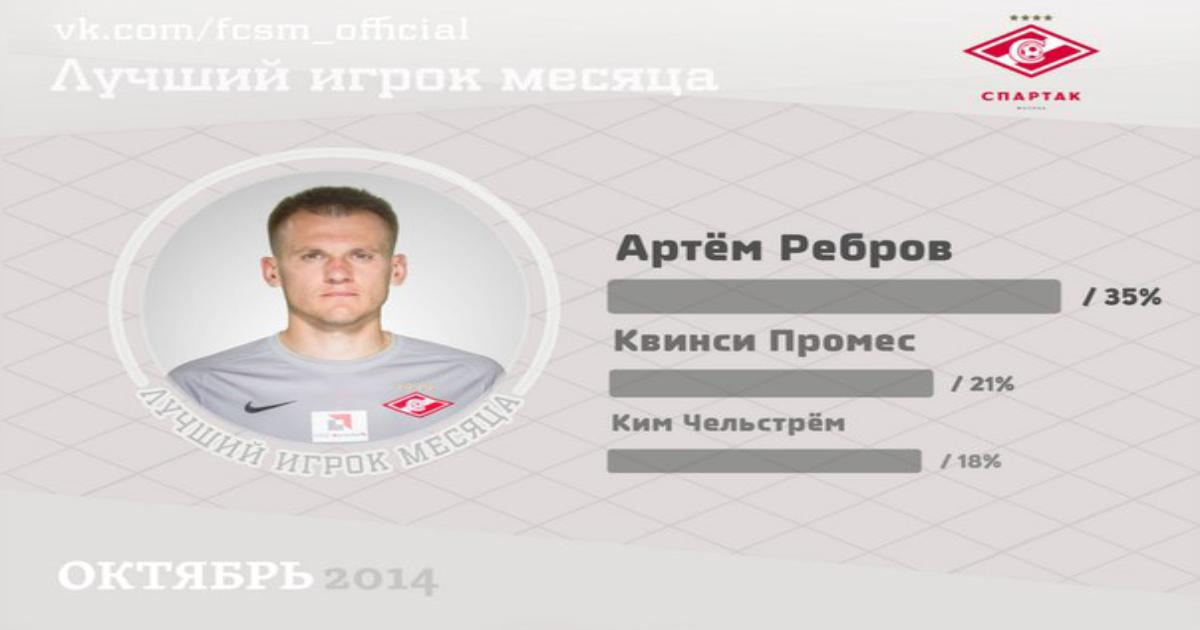 Подписчики официального сообщества ФК «Спартак» «ВКонтакте» определили лучшего игрока октября в составе красно-белых.