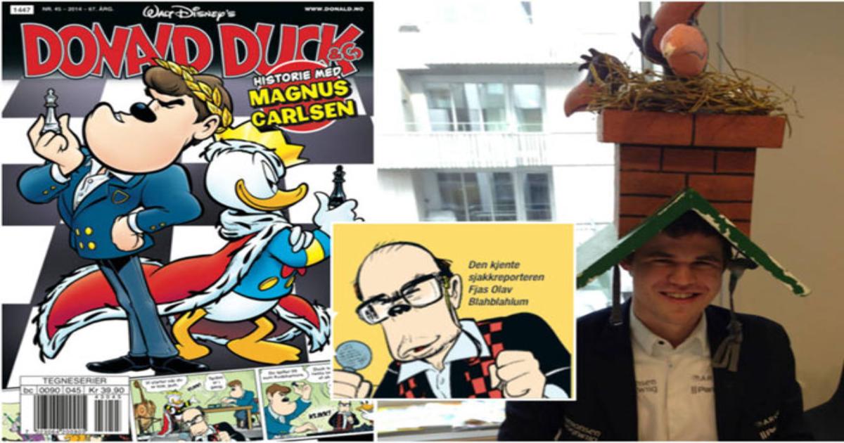 Магнус Карлсен появится на этой неделе в норвежском выпуске «Утиных историй». Лучший в мире шахматист вместе с автором Кнутом Нарумом и художником Арильдом Митхуном вписал себя в совершенно новую утиную историю.
