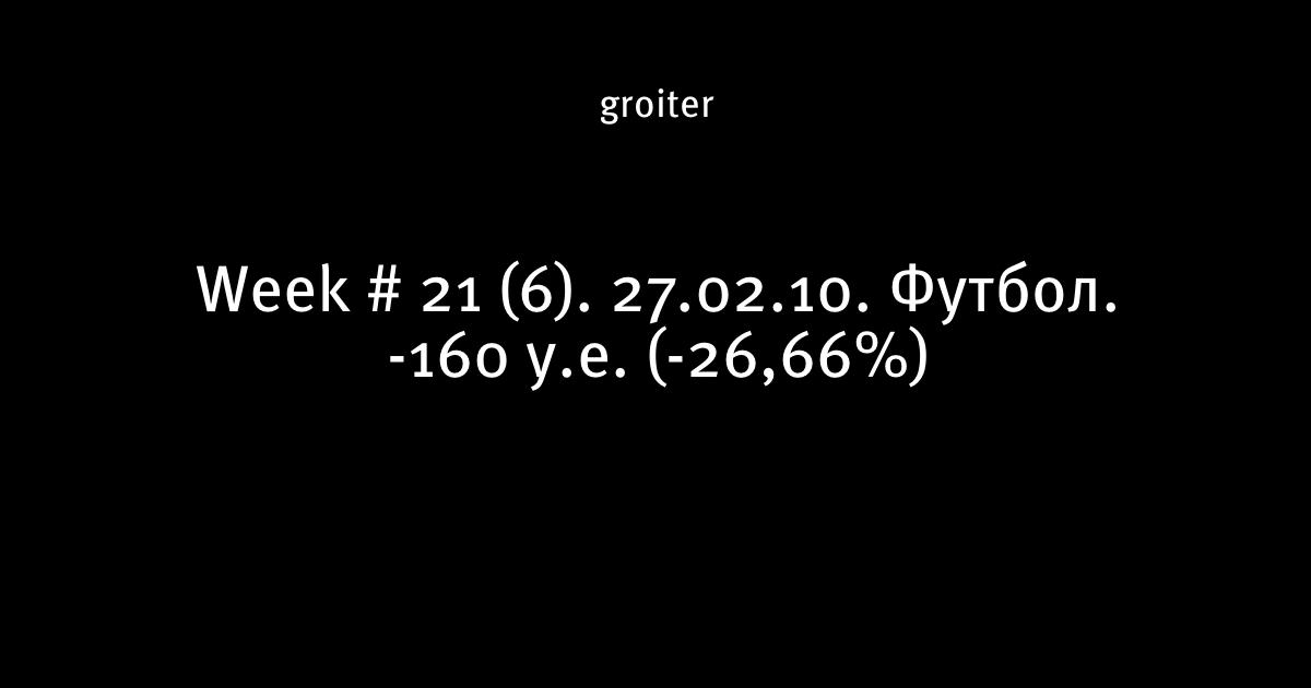 Week # 21 (6). 27.02.10. Футбол. -160 у.е. (-26,66%)