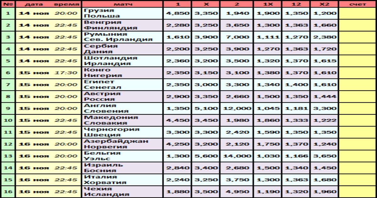 В помощь игрокам выкладываю эксельку для заполнения прогноза.