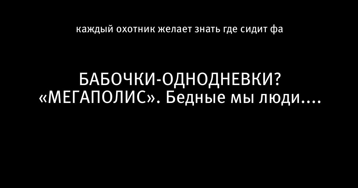 БАБОЧКИ-ОДНОДНЕВКИ? «МЕГАПОЛИС». Бедные мы люди....