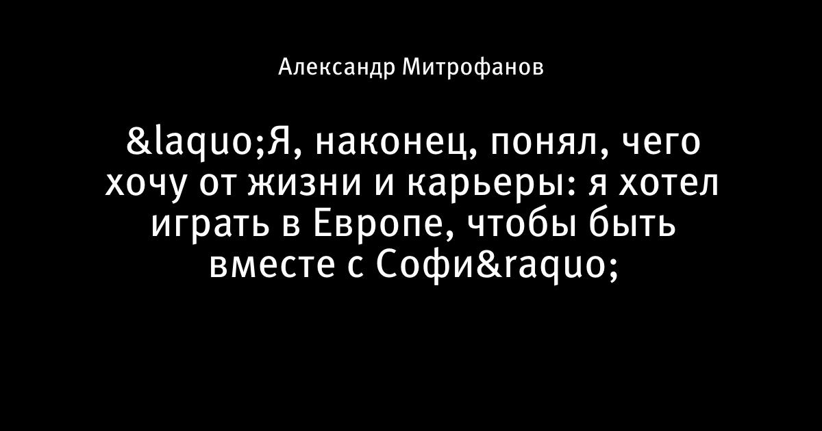«Я, наконец, понял, чего хочу от жизни и карьеры: я хотел играть в Европе, чтобы быть вместе с Софи»