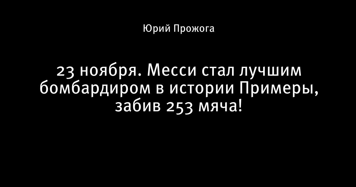 23 ноября 2014, 15:40 23 ноября. Месси стал лучшим бомбардиром в истории Примеры, забив 253 мяча! Автор Юрий Прожога Этот пост опубликован в блоге на Трибуне Sports.ru. Присоединяйтесь к крупнейшему сообществу спортивных болельщиков! Другие посты блога Рисую спорт Лионель Месси Ла Лига
