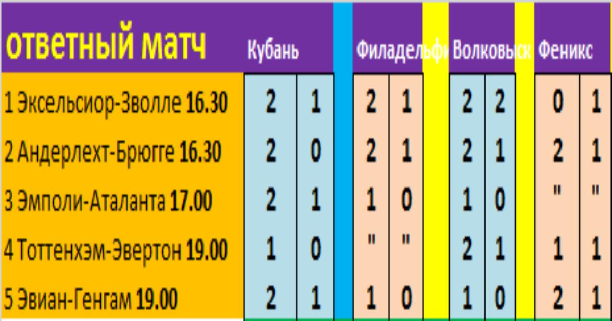 Ставки 2-го тура и ответных матчей 1/2 Кубка