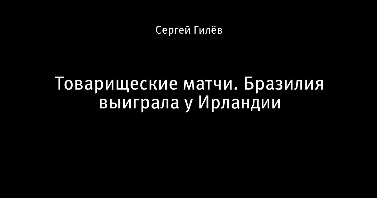 3 марта 2010, 15:13 Товарищеские матчи. Бразилия выиграла у Ирландии Ирландия  Бразилия  0:2 0:1  Эндрюс (44, автогол), 0:2  Робиньо (76) Автор Сергей Гилёв Этот пост опубликован в блоге на Трибуне Sports.ru. Присоединяйтесь к крупнейшему сообществу спортивных болельщиков! Другие посты блога Разборки в олимпийском Париже