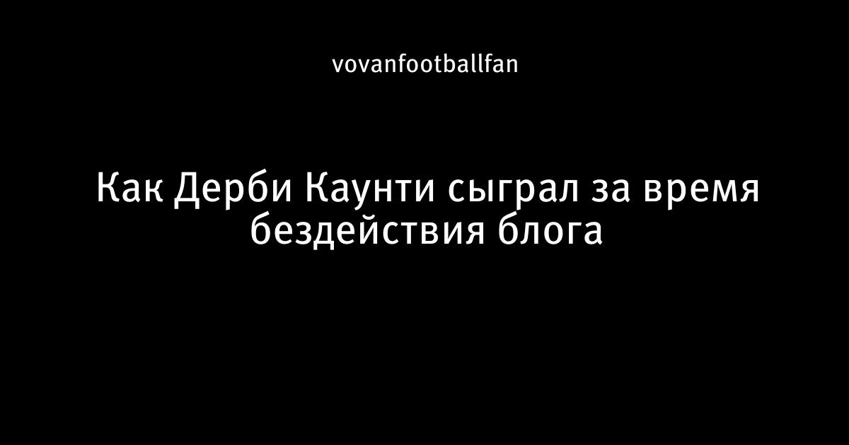 Блог был в бездействии причине того, что я почти полтора месяца был заблокирован. За это время Дерби Каунти сыграл в чемпионате 6 матчей, в целом выступление за это время не очень успешное, но благодаря осечкам конкурентов на турнирную таблицу неудачи команды не особо и повляли: Дерби Каунти был лидером перед как после 13 тура, так остался им и после 19 тура. Расскажем поподробнее о результатах команды.