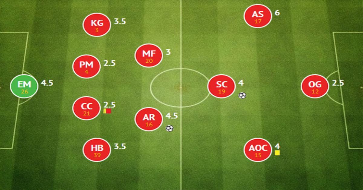 Самые низкие оценки у Кэлума Чемберса и Оливье Жиру (3 от автора и 2,5 от читателей).
