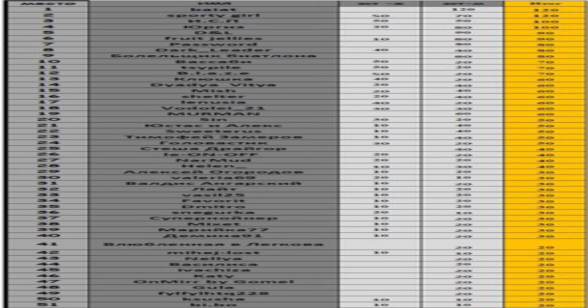 Многие смогли угадать тройку призеров у мужчин, но лишь baiat смог угадать и тройку, и места!