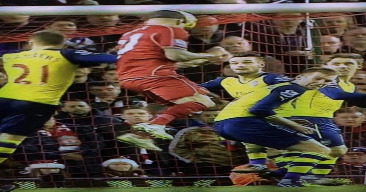 Вот поражают люди которые момент по фотографии судят.Мертезакер вообще Сахо караулил и когда мяч перелетал он по инерции шёл назад,а Шкртела по всей видимости должен был охранять Чемберс, который в итоге проспал рывок словака.