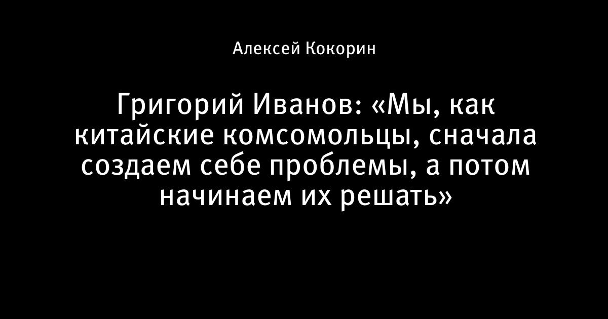 Григорий Иванов: «Мы, как китайские комсомольцы, сначала создаем себе проблемы, а потом начинаем их решать»