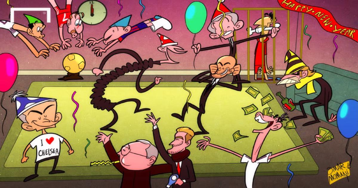 Уходящий год футбола оказался весьма богат на яркие события и исторические свершения. Взглянем на некоторые из них глазами одного из лучших карикатуристов нашего времени.