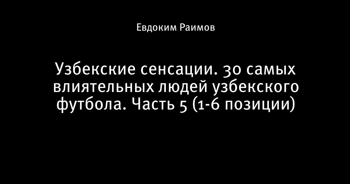 Узбекские сенсации. 30 самых влиятельных людей узбекского футбола. Часть 5 (1-6 позиции)