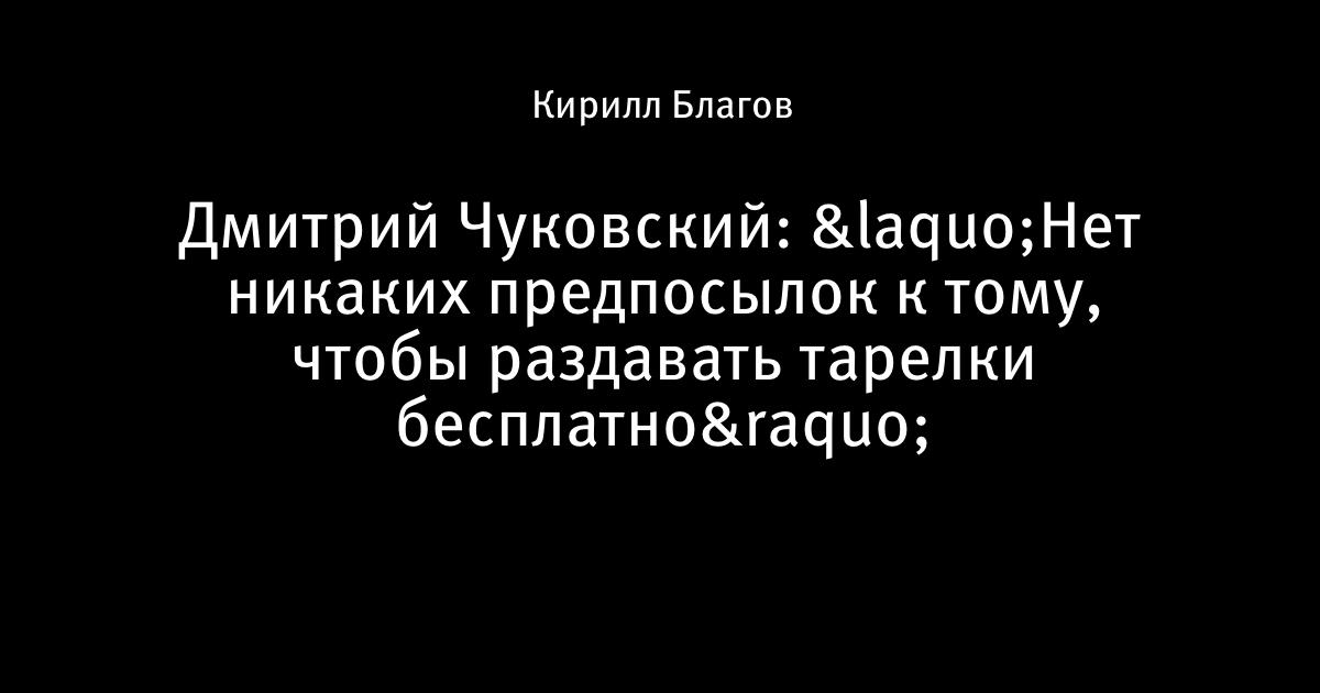 Дмитрий Чуковский: «Нет никаких предпосылок к тому, чтобы раздавать тарелки бесплатно»