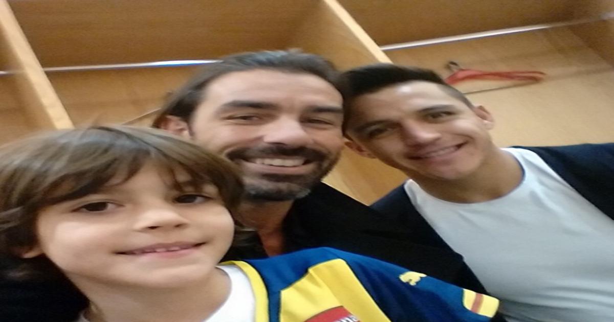 Герой матча Алексис Санчес и легенда Робер Пирес празднуют после матча (фото)
