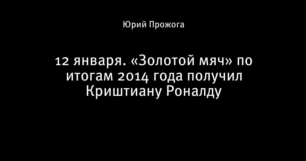 12 января 2015, 22:04 12 января. «Золотой мяч» по итогам 2014 года получил Криштиану Роналду Автор Юрий Прожога Этот пост опубликован в блоге на Трибуне Sports.ru. Присоединяйтесь к крупнейшему сообществу спортивных болельщиков! Другие посты блога Рисую спорт Золотой мяч Криштиану Роналду