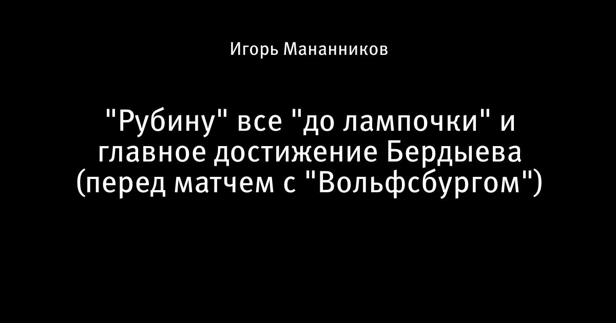 "Рубину" все "до лампочки" и главное достижение Бердыева (перед матчем с "Вольфсбургом")