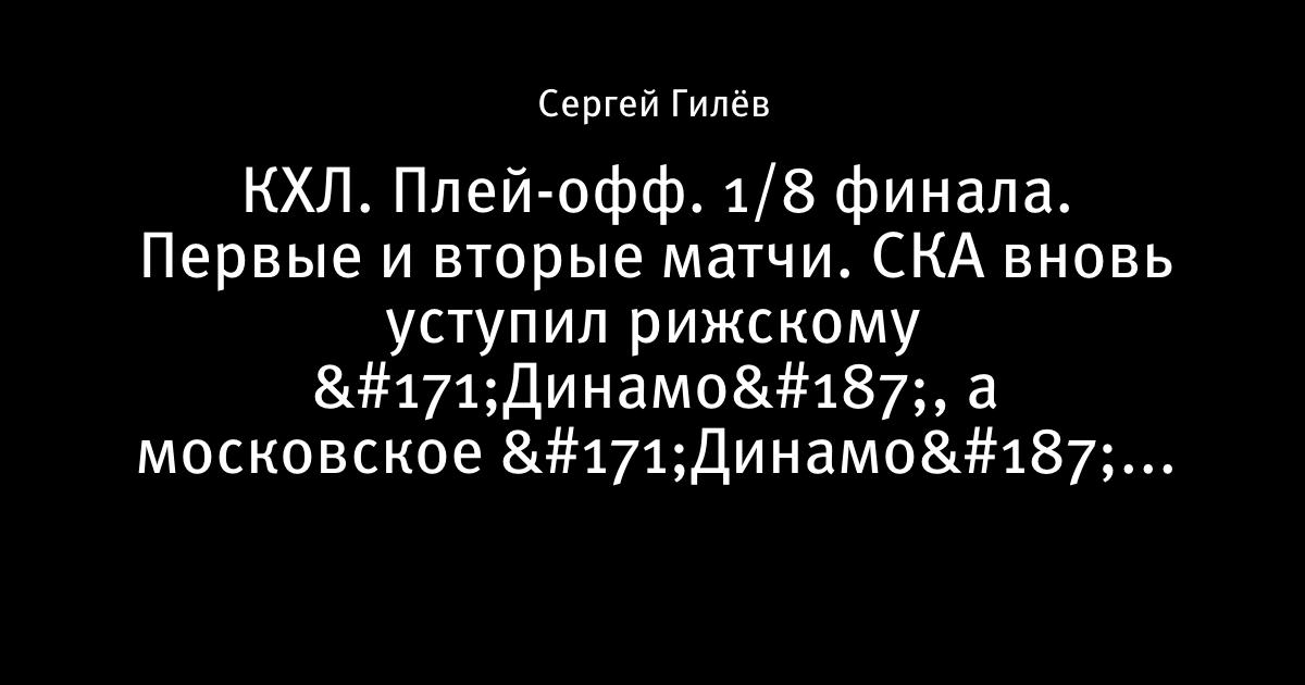 12 марта 2010, 12:12 КХЛ. Плей-офф. 1/8 финала. Первые и вторые матчи. СКА вновь уступил рижскому «Динамо», а московское «Динамо» «Спартаку» Металлург Мг Трактор 5:2 (3:2, 1:0, 1:0) Салават Юлаев Автомобилист 5:1 (1:0, 1:0, 3:1) СКА Динамо Рига 1:3 (1:1, 0:2, 0:0) Нефтехимик Авангард 2:0 (1:0, 0:0, 1:0) Ак Барс Барыс 4:3 (0:2, 2:1, 1:0, 1:0) ХК МВД ЦСКА 4:2 (2:2, 1:0, 1:0) Динамо Спартак 0:1 (0:0, 0:1, 0:0) Атлант Локомотив 4:3 (1:1, 1:1, 1:1, 1:0) Автор Сергей Гилёв Этот пост опубликован в блоге на Трибуне Sports.ru. Присоединяйтесь к крупнейшему сообществу спортивных болельщиков! Другие посты блога Айс-ТВ