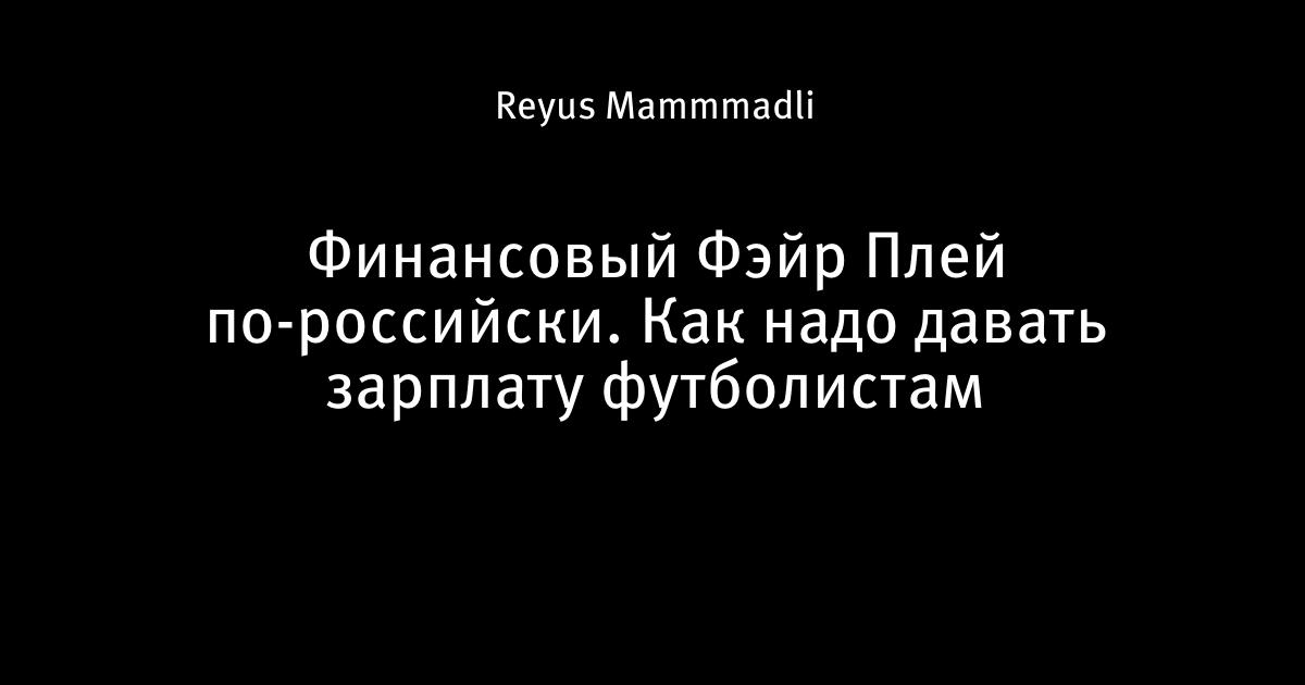 Финансовый Фэйр Плей по-российски. Как надо давать зарплату футболистам