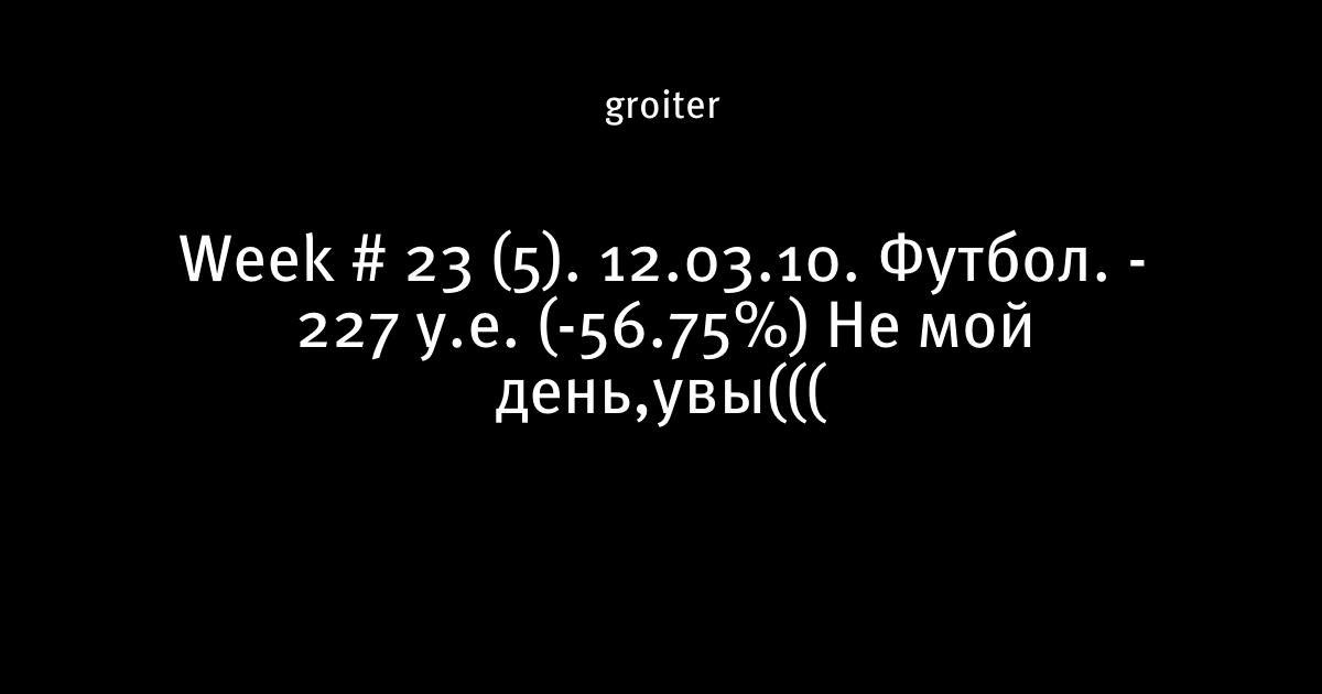 Week # 23 (5). 12.03.10. Футбол. - 227 у.е. (-56.75%) Не мой день,увы(((