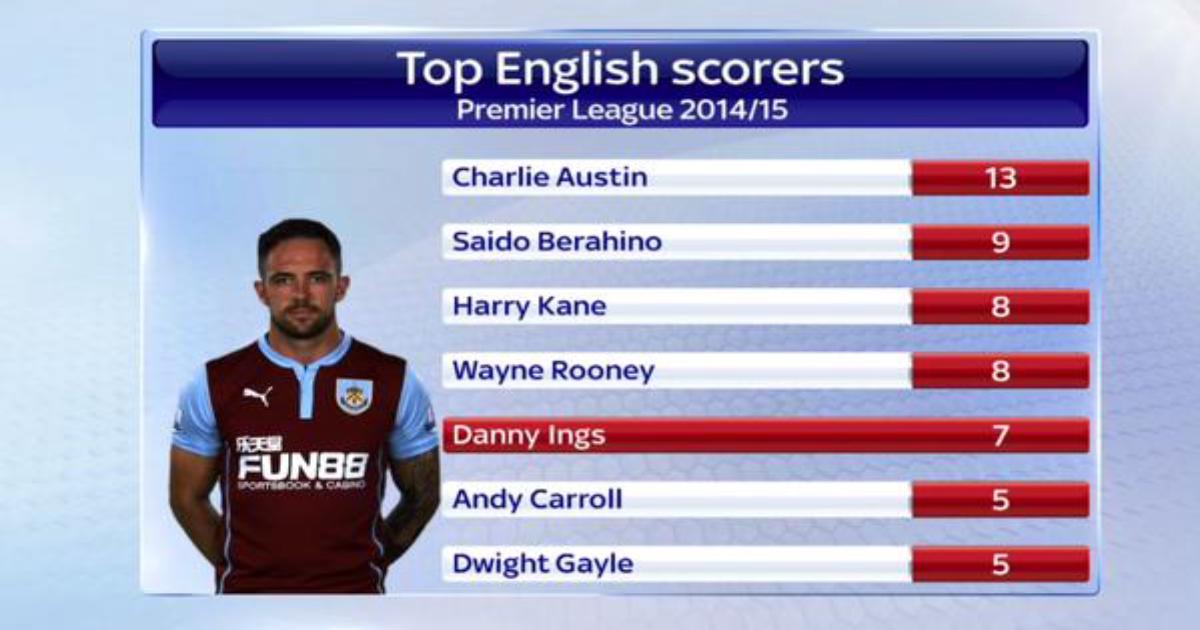 Самые результативные игроки с английским паспортом в сезоне 2014/15