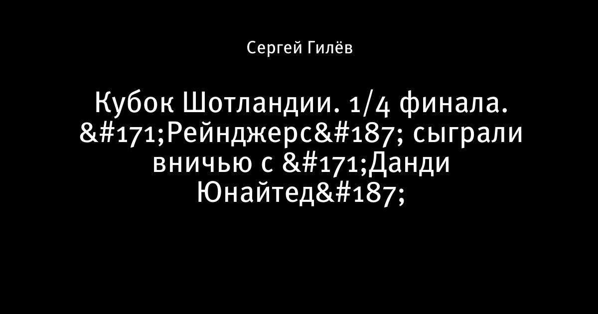 15 марта 2010, 00:59 Кубок Шотландии. 1/4 финала. «Рейнджерс» сыграли вничью с «Данди Юнайтед» Рейнджерс Данди Юнайтед 3:3 0:1 Шала (24) 1:1 Бойд (34, пен.) 2:1 Бойд (43, пен.) 3:1 Ново (48) 3:2 Уиттакер (64) 3:3 Ковачевич (80) Килмарнок Селтик 0:3 0:1 Кин (64), 0:2 Кин (81), 0:3 Кин (82) Автор Сергей Гилёв Этот пост опубликован в блоге на Трибуне Sports.ru. Присоединяйтесь к крупнейшему сообществу спортивных болельщиков! Другие посты блога Разборки в олимпийском Париже