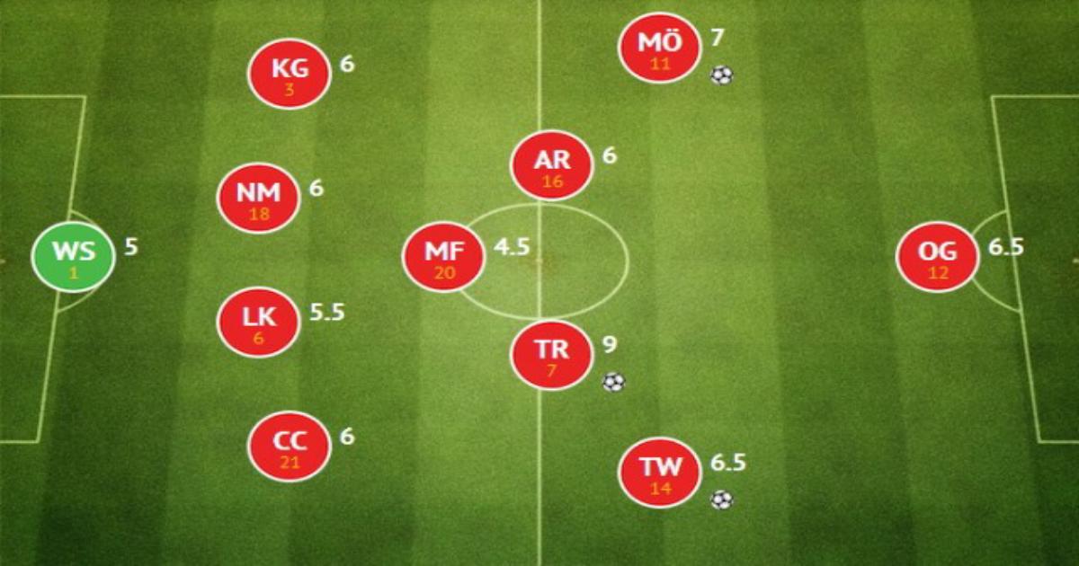 Еще несколько футболистов получили оценки 6,5: Тео Уолкотт, Оливье Жиру, Алексис, Чуба Акпом. У Франсиса Коклена 7,5 от читателей за то, что помог сдержать хозяев поля, когда в концовке матча они старались сравнять счет.