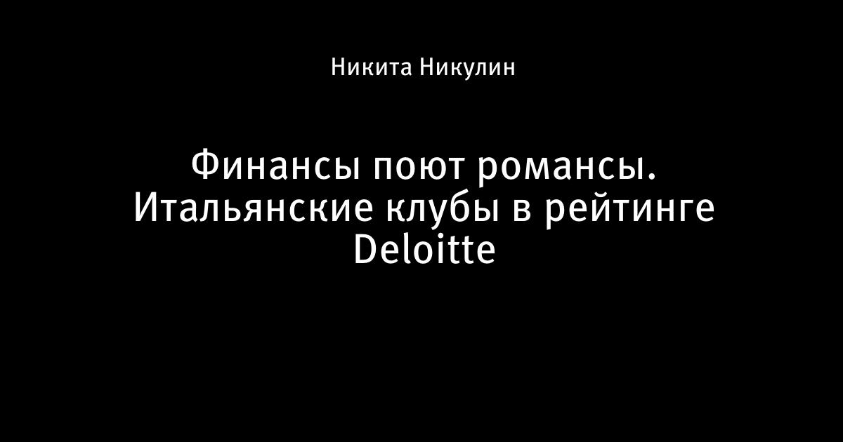 31 января 2015, 15:35 Финансы поют романсы. Итальянские клубы в рейтинге Deloitte Автор Никита Никулин финансовый фэйр-плей серия А Италия Интер Ювентус Милан