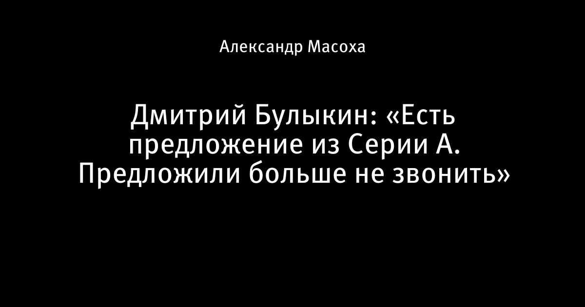 Дмитрий Булыкин: «Есть предложение из Серии А. Предложили больше не звонить»