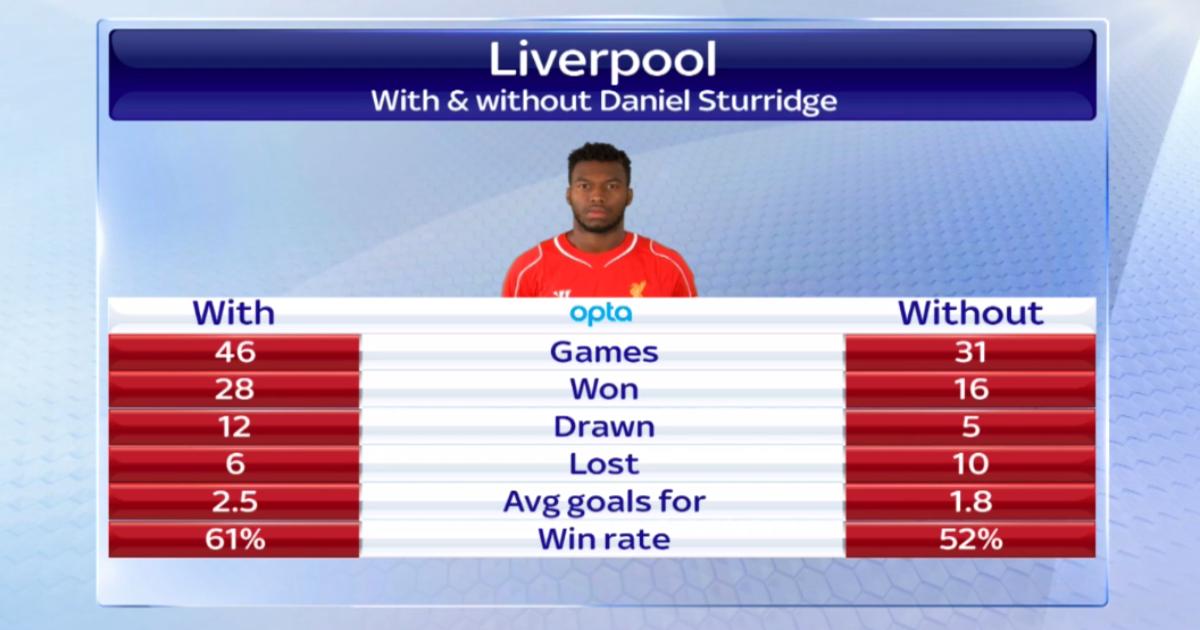 Статистика «Ливерпуля» с и без Дэниэла Старриджа