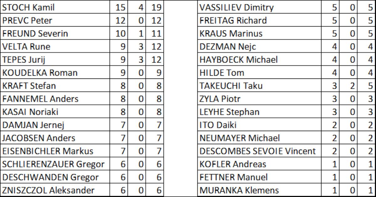 Камил Стох одерживает победу в Вилленгене, а мы подводим итоги очередного этапа. При необходимости делаем 2 бесплатных замены, каждая дополнительная - за 10 миллионов.