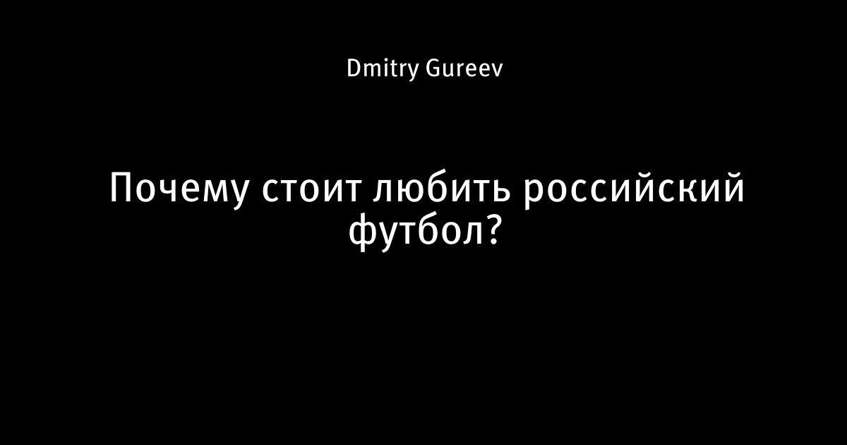 Любить российский футбол, так же трудно, как маленькому неопытному подростку, свою подружку блудницу, с одной стороны понимаешь, что толком ничего из себя не представляет, с другой: юношеская любовь. Первая и настоящая. Так же было и со мной, но уже в лице футбола, когда отец впервые повел меня на стадион "Камышин" на матч "Текстильщика", хотя играли уже на тот момент в низшей лиги, но для меня этого особенного значения не имело. Именно, тогда я и полюбил футбол, в частности российский. Итак попробуем систематизировать, за, что все таки стоит любить русский футбол?..