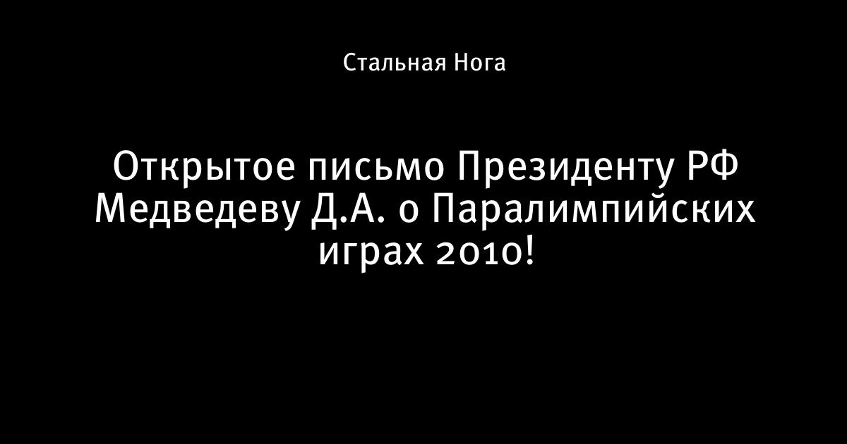 Открытое письмо Президенту РФ Медведеву Д.А. о Паралимпийских играх 2010!